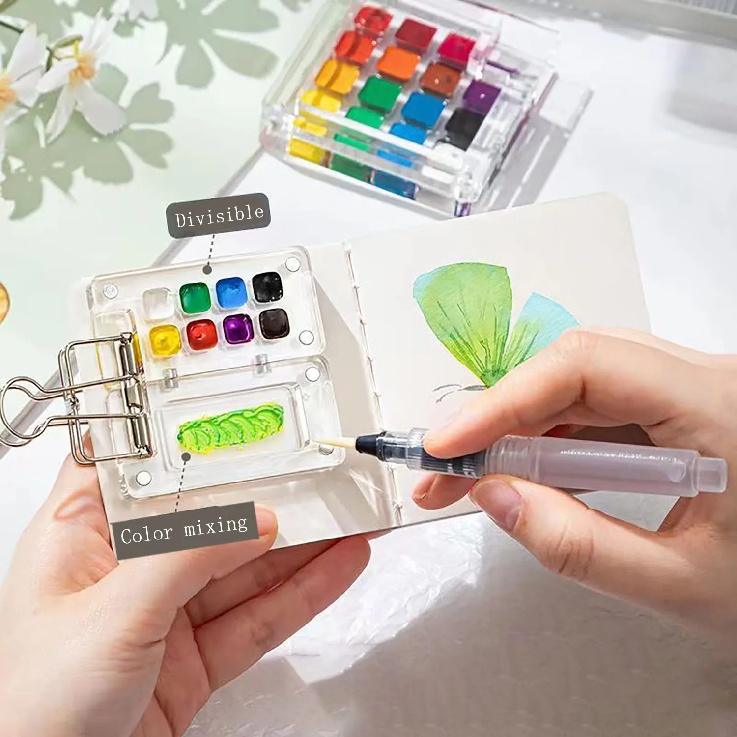 1pc 8 Style color box 15 Style color box mini watercolor paint box Portable painting book sketching travel painting